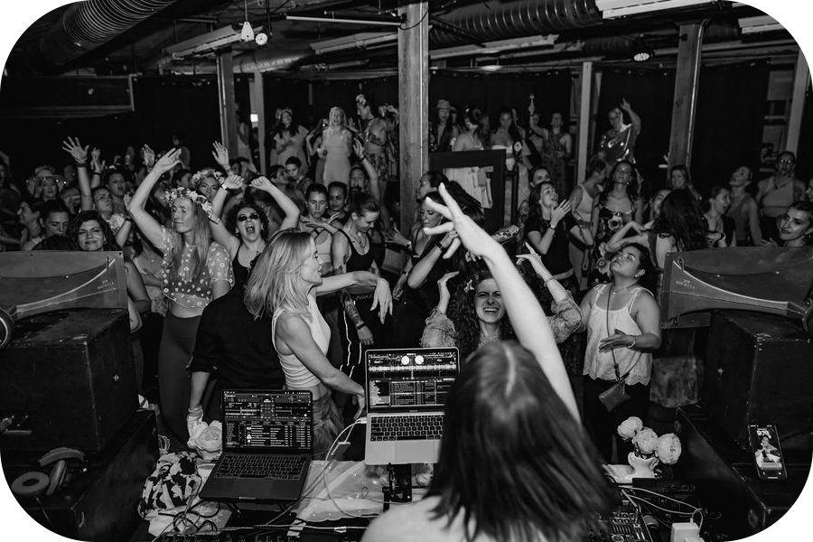 Fast forward to December 2023, I put my teachings as a mindset coach to good use: I claimed a big audacious goal and put a date to it: “In 30 days, I will throw a dance party. And, to force myself to learn how to DJ, I will DJ it”. That party ended up being the catalyst for my DJ career and what REUNION is today. I went from not being a DJ on January 1st that year to doing 50+ gigs (including a wedding and the NYE ball drop in Toronto) and growing REUNION from a 30 person to a 500 person party in the span of a year.
